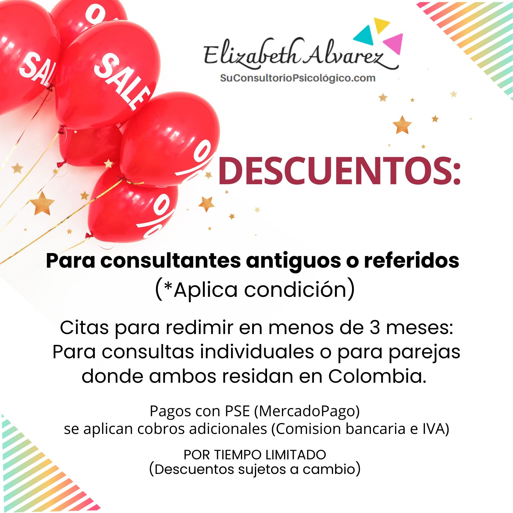 Este precio corresponde de forma individual o en casos de terapia de pareja, cuando uno de los dos se encuentra radicado en Colombia y la otra persona en el exterior.